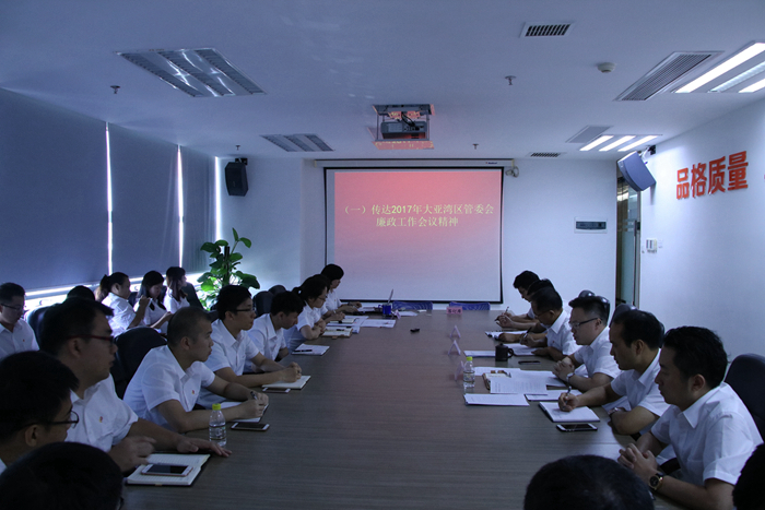 為了認真貫徹落實國有企業(yè)黨風廉政建設和安全生產主體責任,會議首先由基建公司副總經理溫巍靈主要傳達區(qū)委副書記、管委會主任范志益、區(qū)委常委、紀委書記方小龍在2017年初在廉政工作會議上的講話精神,回顧了上半年公司的黨風廉政建設工作情況,并對下半年黨風廉政工作進行部署。